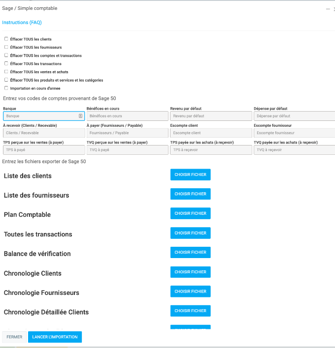 Check the integrity before sending (procedure at the bottom of this article)To import your data from Sage 50 to GEM-CAR, you have two options.