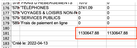 Compare the ClientSom.xls and ClientDt.xls files. The totals in the "Total unpaid:" columns should match. The same goes for FourSom.xls and FournDet.xls.