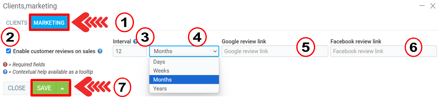 If you want to know the meaning of the box Enable customer reviews on sales, hover over the words and a blue balloon will appear explaining the following: "Following a sale, customers will receive an automatic email asking to review the following links. Make sure you have set up a 'Marketing - Customer Reviews' type email template for this system to work well".
