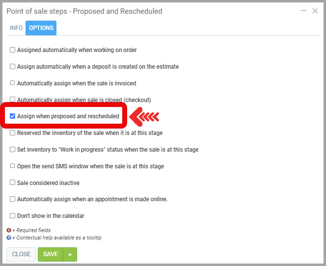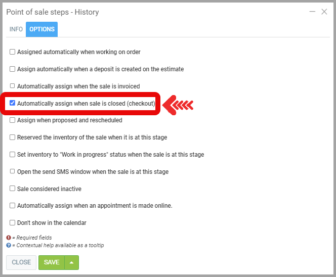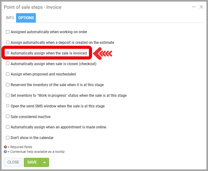 Automatically assign when the sale is closed (cash register closing) should be checked.