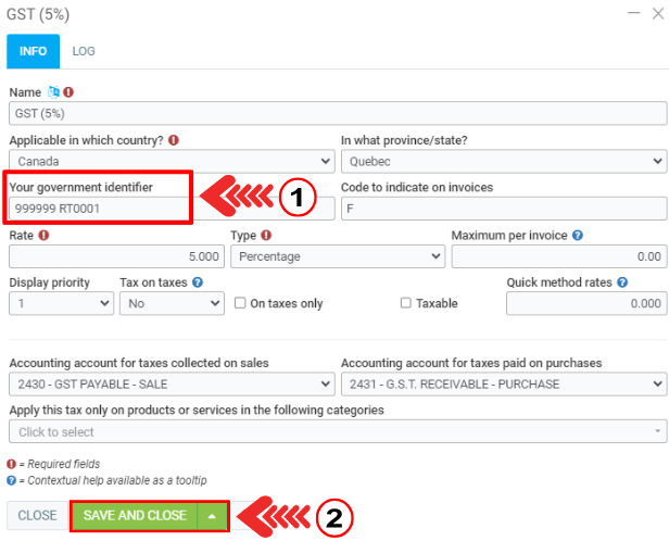 If you want to specify your tax numbers, click on the "Taxes Canada" tax rule. If you have the module, Carrier, Broker, or Courier, you will have to do the same thing in "Taxes Canada - Freight transportation" and "Taxes Canada - Freight transportation in Quebec".