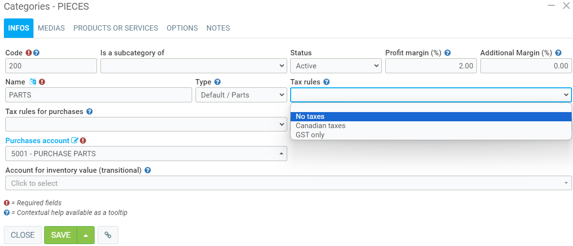Note: If you want to sell products without taxes, you don't need to add a tax rule. Simply specify the tax rule No taxes to be used in a category or manually during a sale in the Accounting > Specify button.