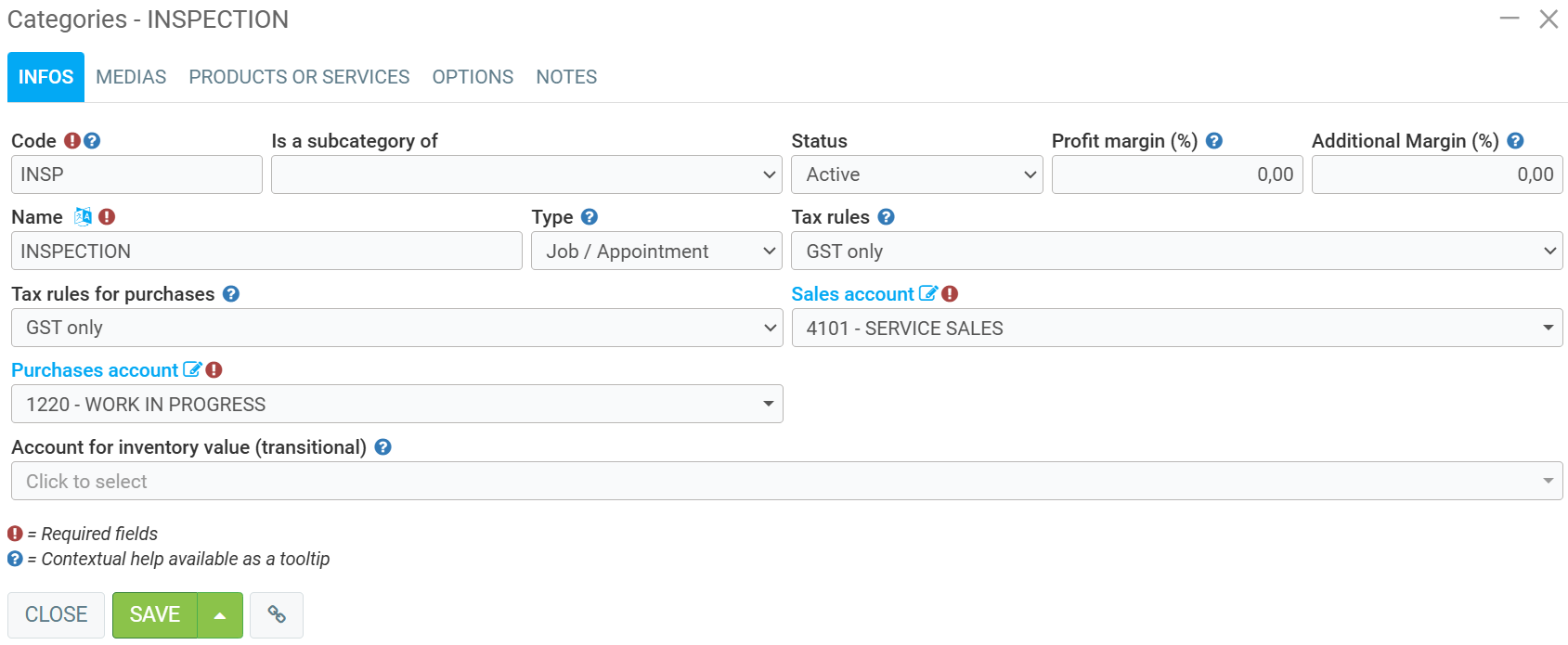 6) The category could be "Job" or "Inspection". You can choose among the ones you have created.