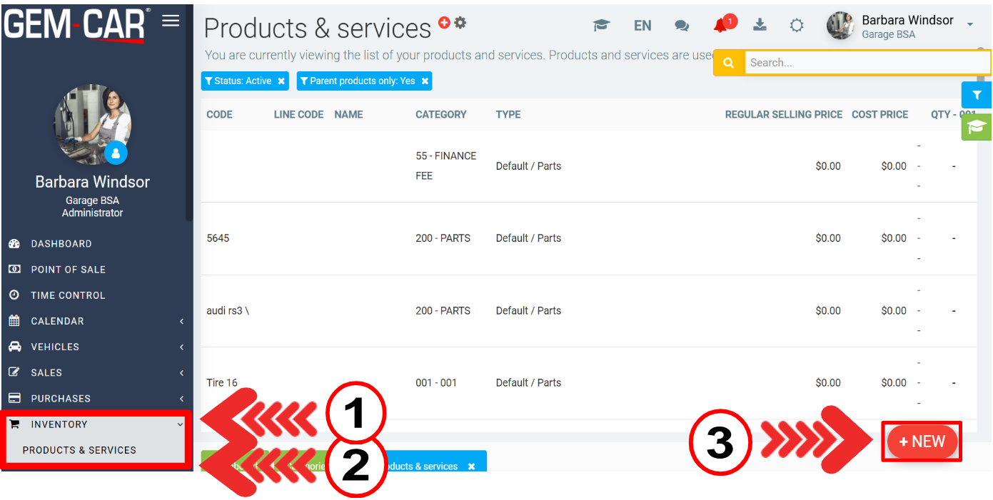In the left side menu, click on Inventory > Products & Services > +New (on the bottom right side of the screen).