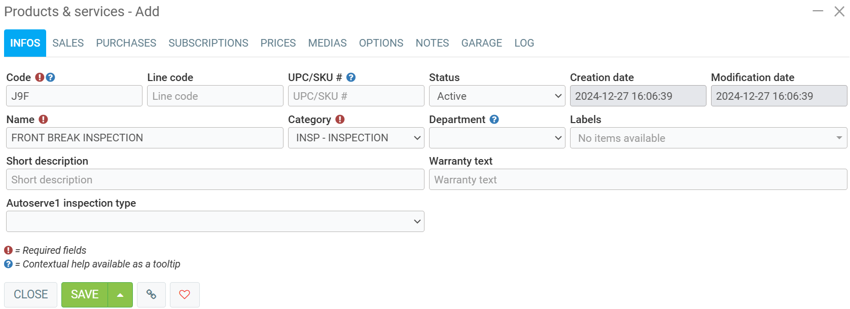 Creating product/ service for inspections