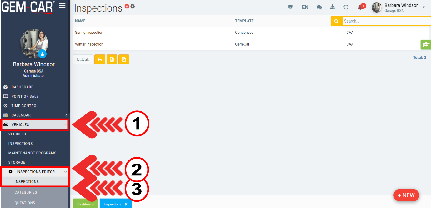 In your GEM-CAR, you can create and customize inspections according to your workshop's needs.