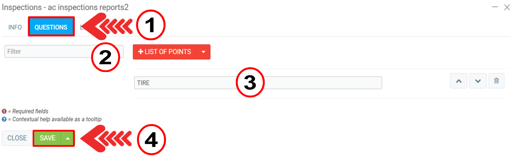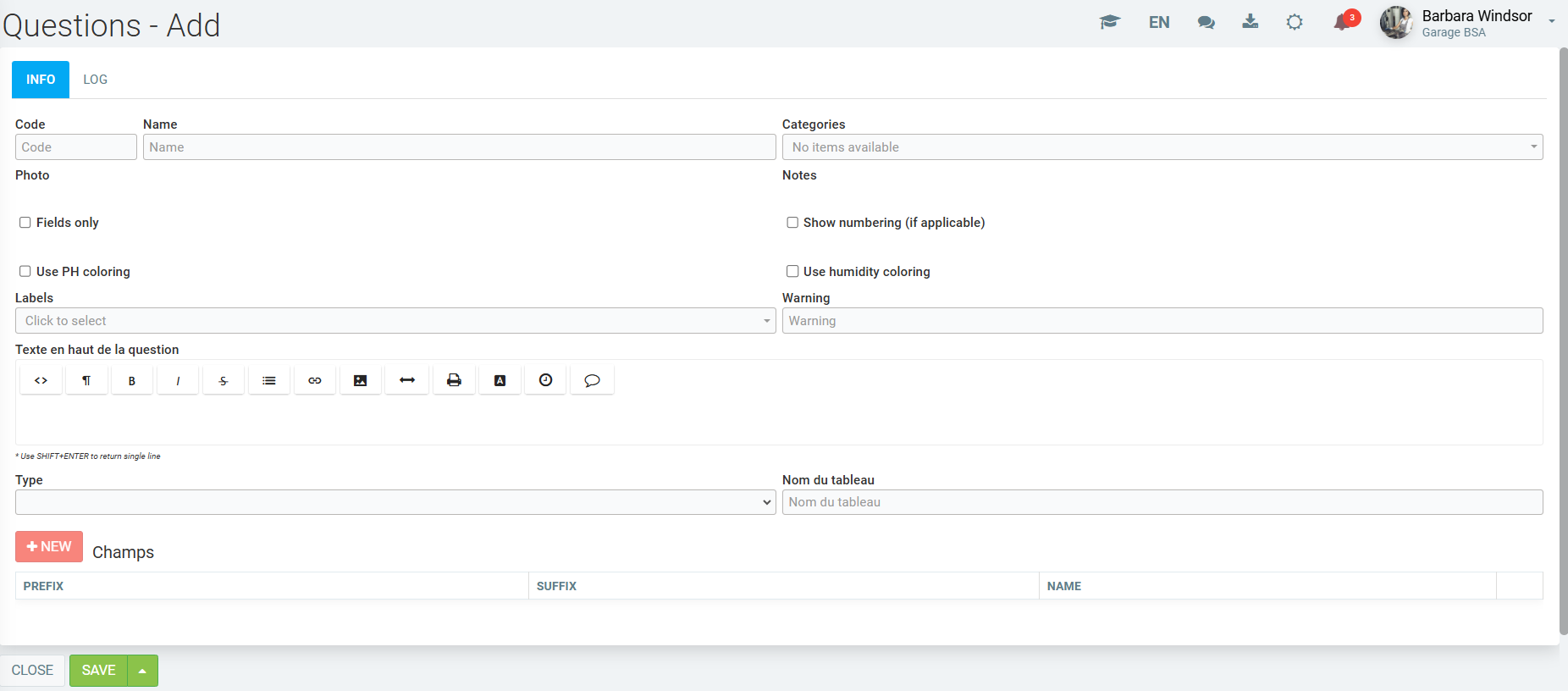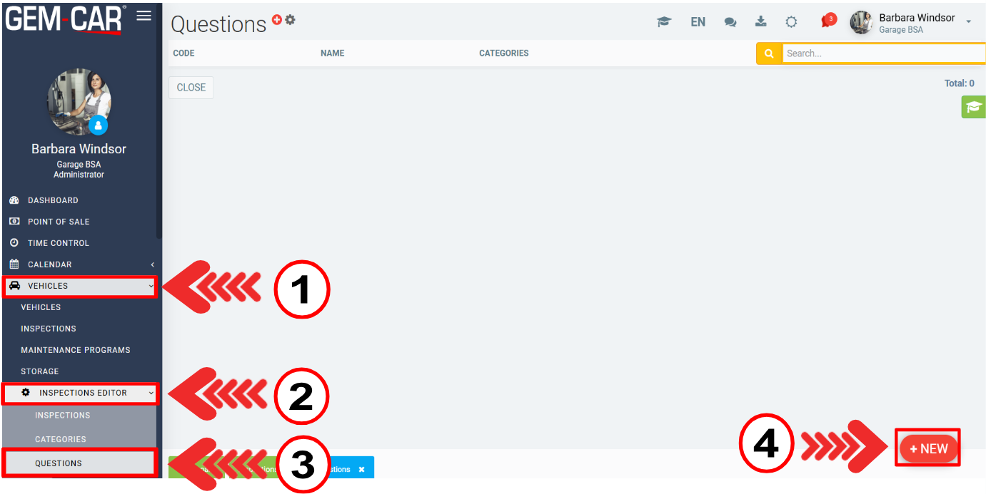 In the Vehicles > Inspections Editor > Questions > + New tab, you can create new questions for your inspections, according to your needs.