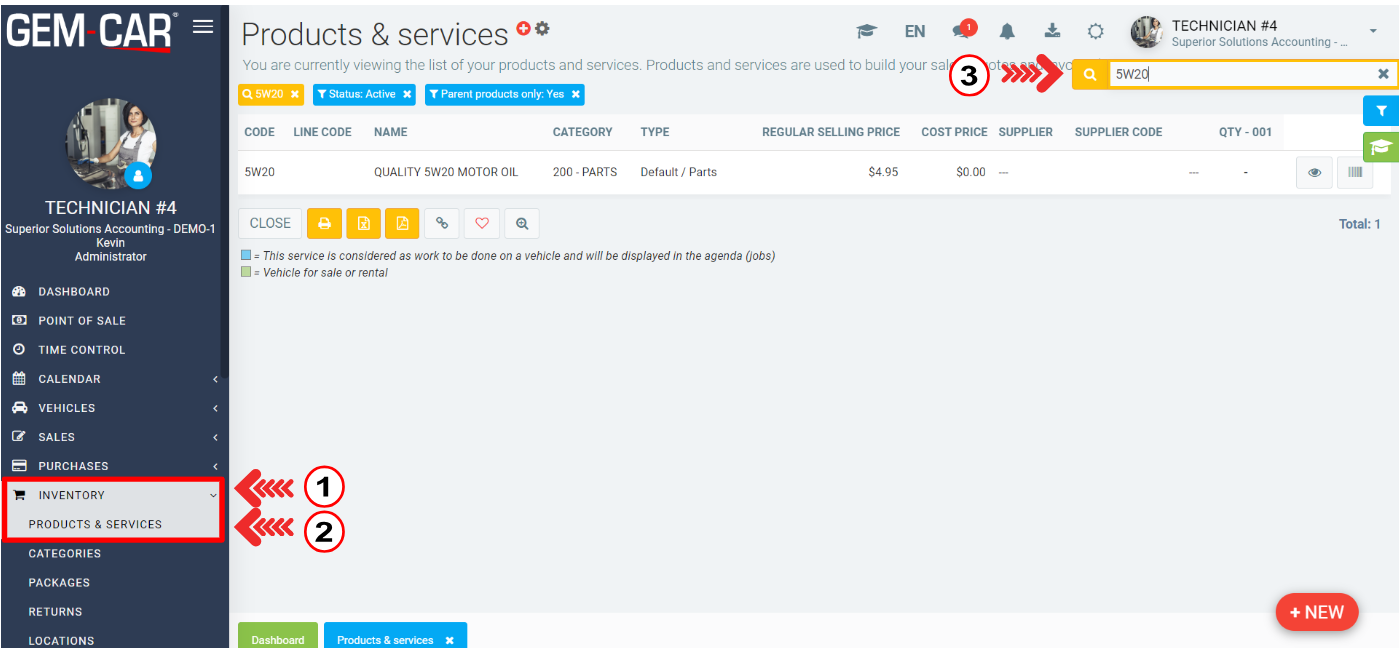 For this end, click on Inventory > Products and services. Then search for the desired product in the search bar and open the product.