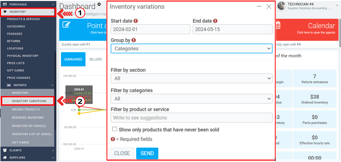 But for a report with more filters, there's the Inventory > Inventory Variations option.