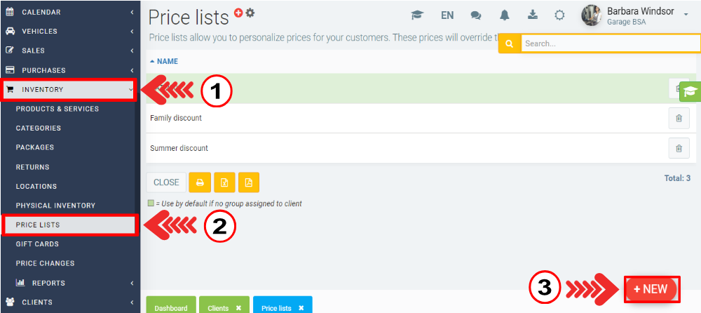 Click on Inventory > Price lists > +New.