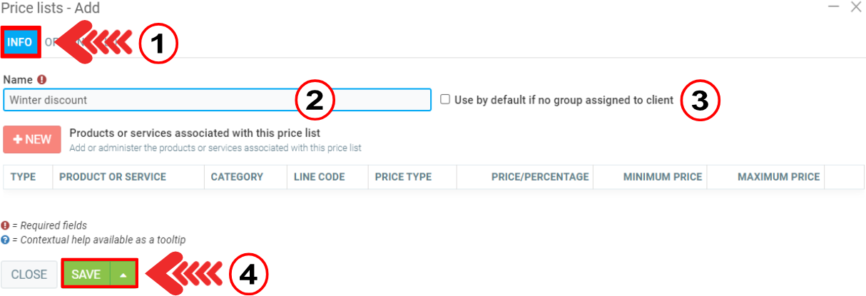 In the window, enter the name of the list, and whether it is a default list for customers.