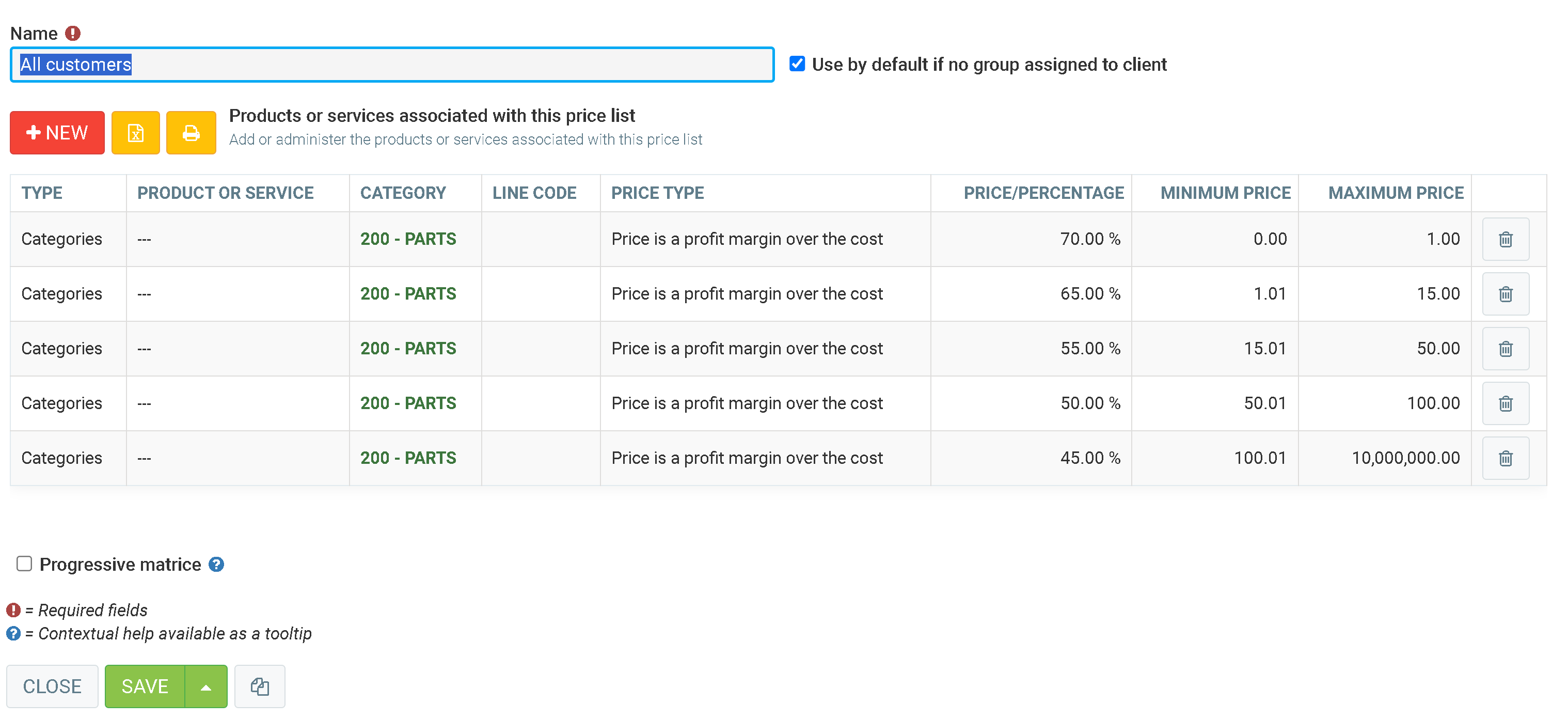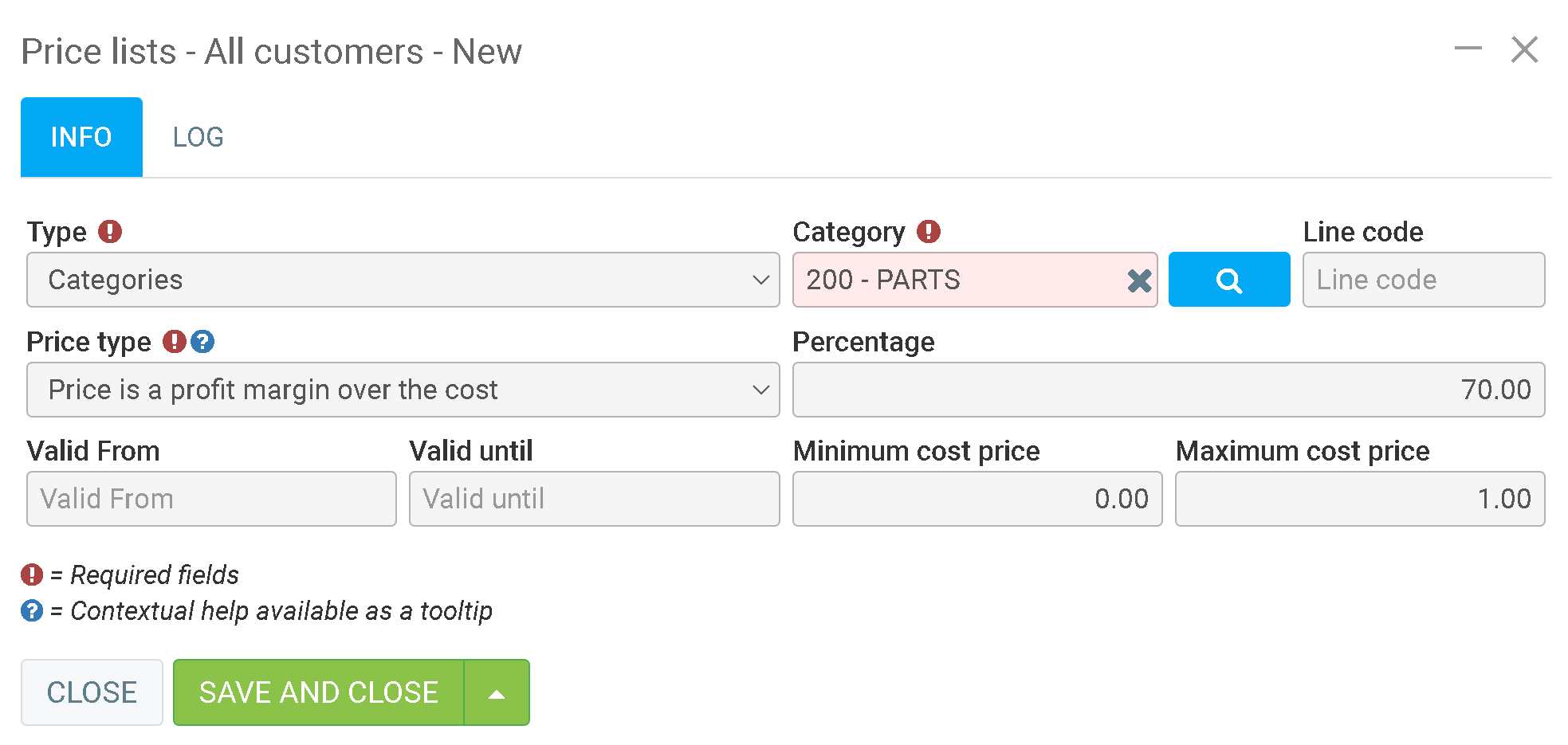 - Price type: Price is a profit margin over the cost.