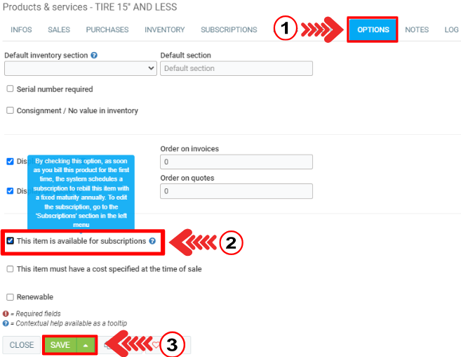 Note: Although it is also possible to add it from the Sales menu under Subscriptions, you will need to fill out the form. This menu is especially useful for viewing the complete list of your subscriptions and for modifying them if necessary.