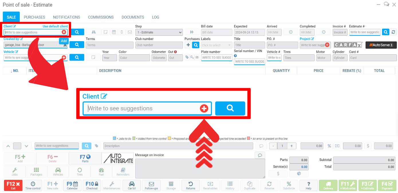In the Point of Sale, click on the Client section and click on the red + to create a new client.