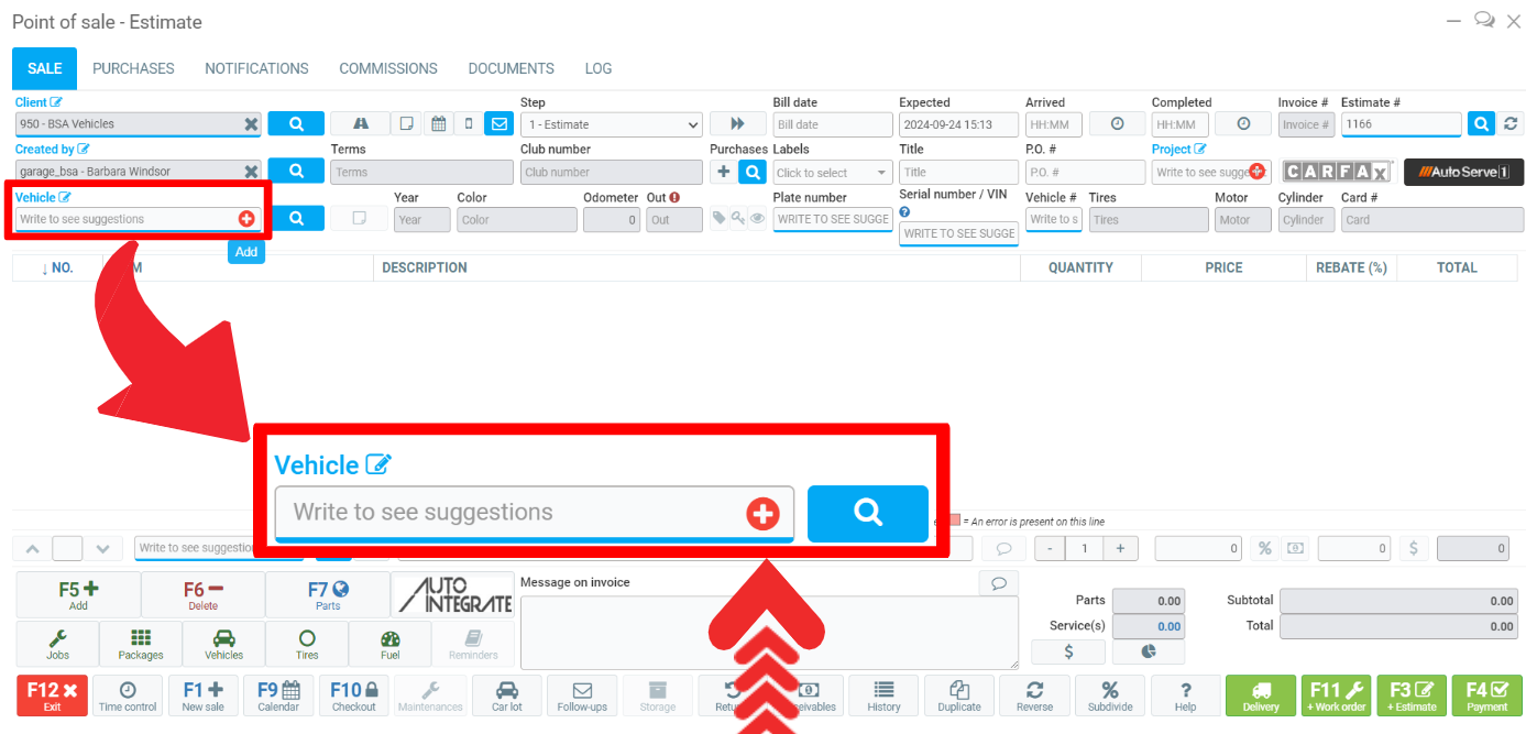 To create a used vehicle for the owner, enter the make, model and year associated with his vehicle in Point of Sale, in the Vehicle section.