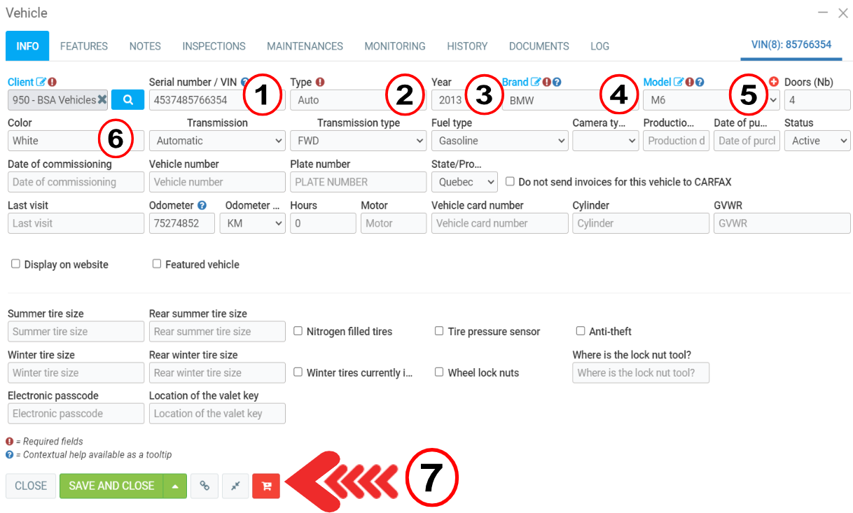 Then click on the red cart next to the Save and Close button, and follow the steps in the following FAQ: Create an Used Vehicle.