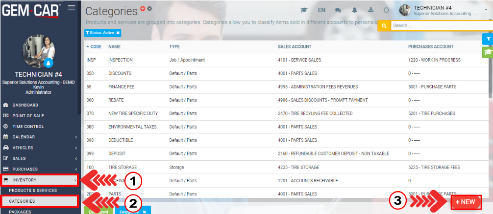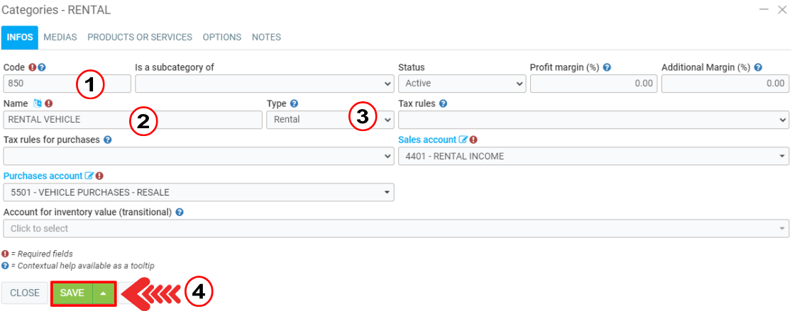 To create a new rental category, click on Inventory > Categories > +New.