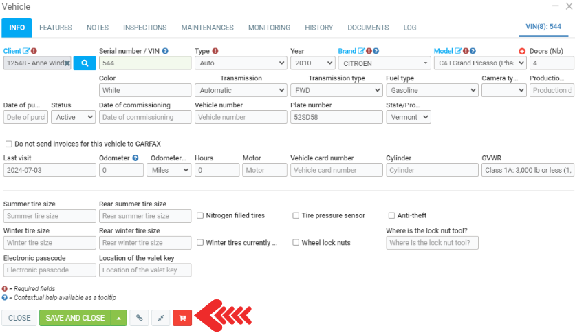 In the Point of sale, click on the "Vehicle" link at the top of the field.