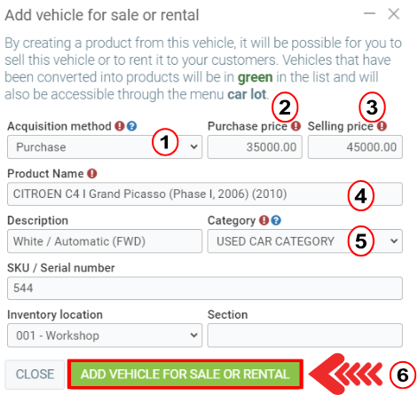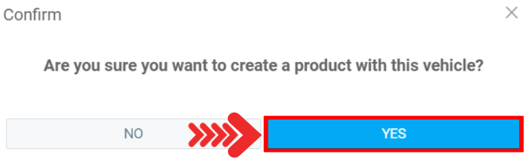 Click Yes on the validation question "Are you sure you want to create a product with this vehicle?".