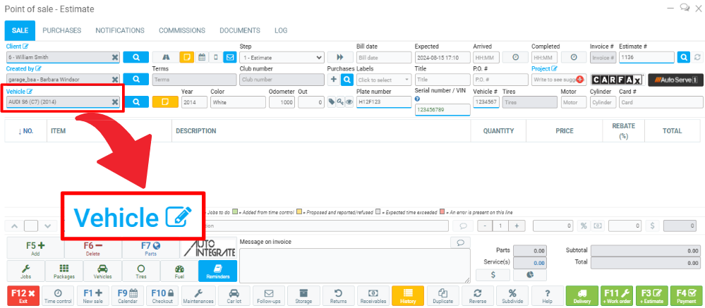 1. From the Point of sale, click on Vehicle (in blue over the text box).