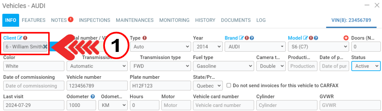 If a vehicle owner is changing, for example, after it was sold, the client associated with the vehicle needs to be changed in your GEM-CAR.