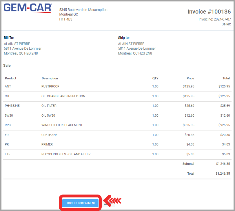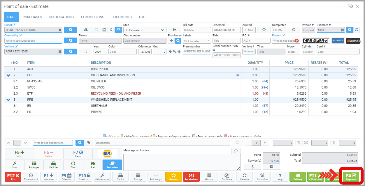 - To send an invoice to a client by email, from the Point of Sale, click on Payment (F4).