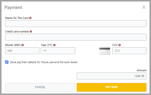 From the email, the client clicks on Pay Online > Proceed to Payment and manually enters their credit card information.