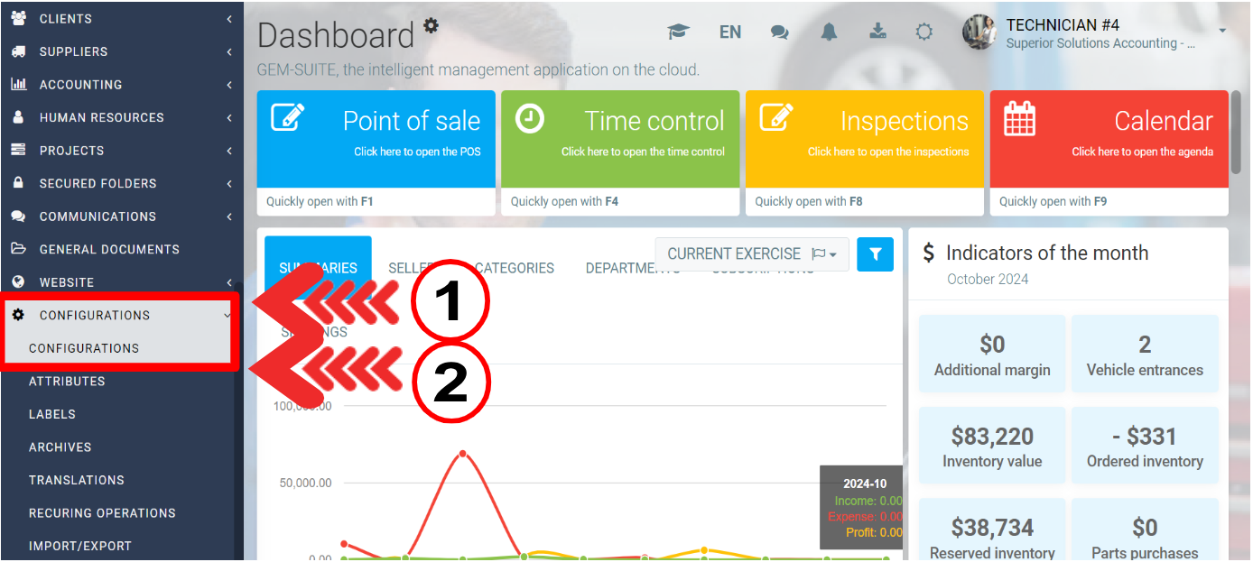 To receive Automatic Payments with terminals, you need to click on Configurations > Configurations.