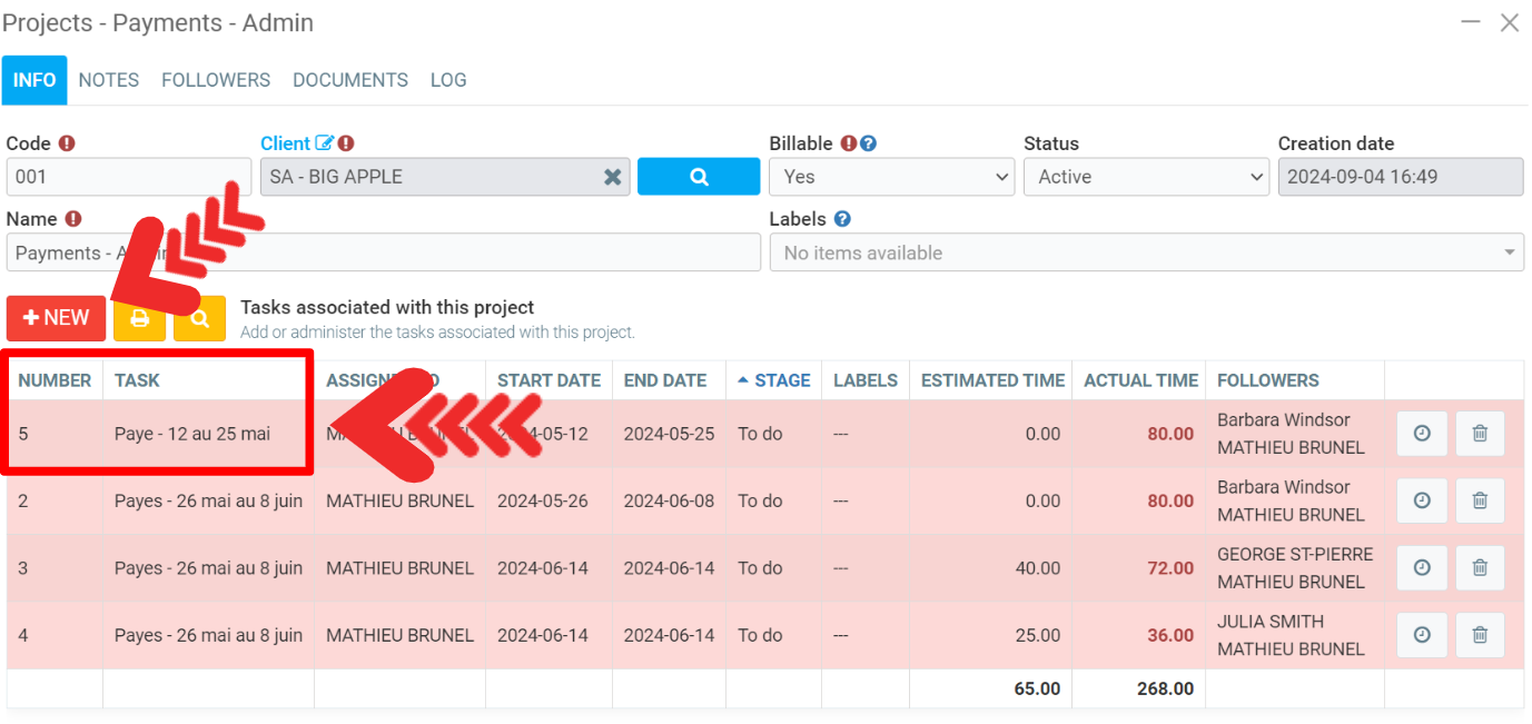 Then, for the targeted period, employees need to have hours recorded to be paid. Hours should be saved in a project.