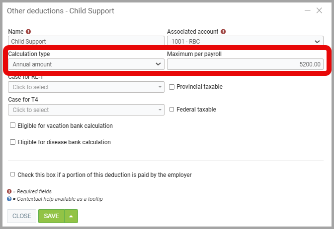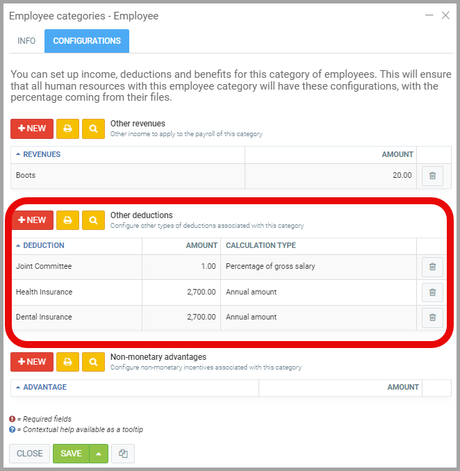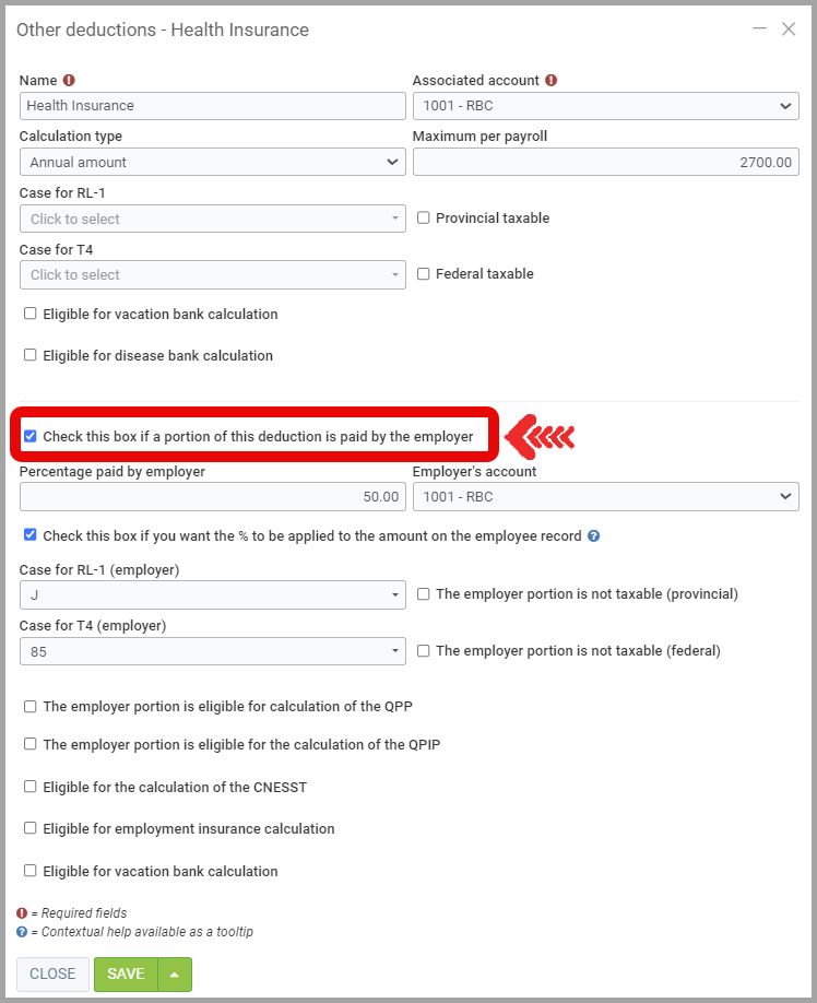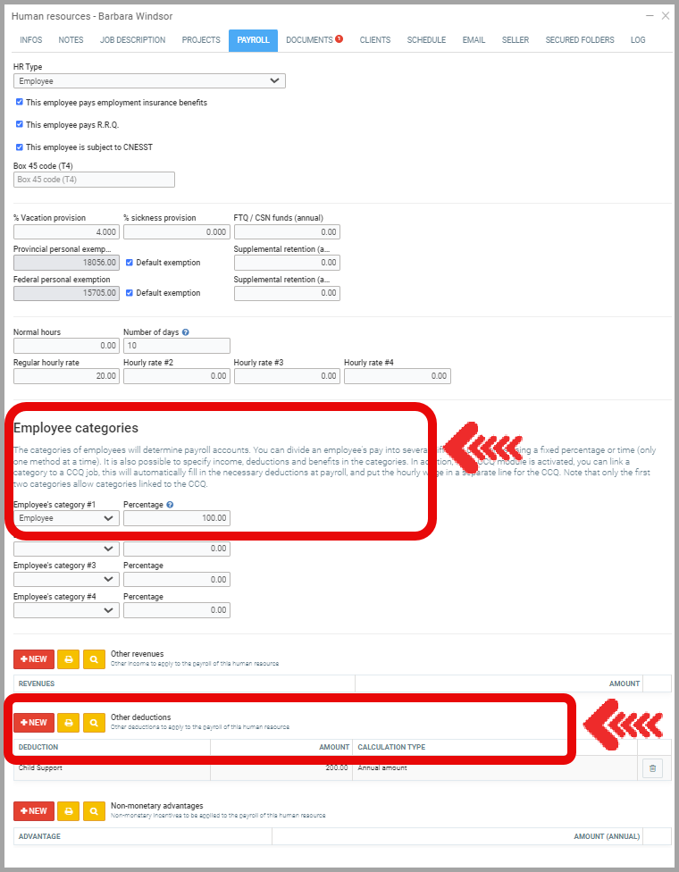 - There is also a checkbox to indicate if the employer is the one who pays the amount instead of the human resource.