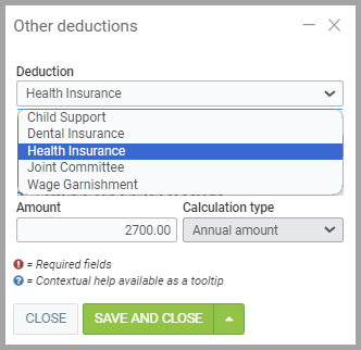 - Next, you need to define the type of calculation for this deduction: Annual Amount, Percentage of Gross Salary, or Hourly Amount.