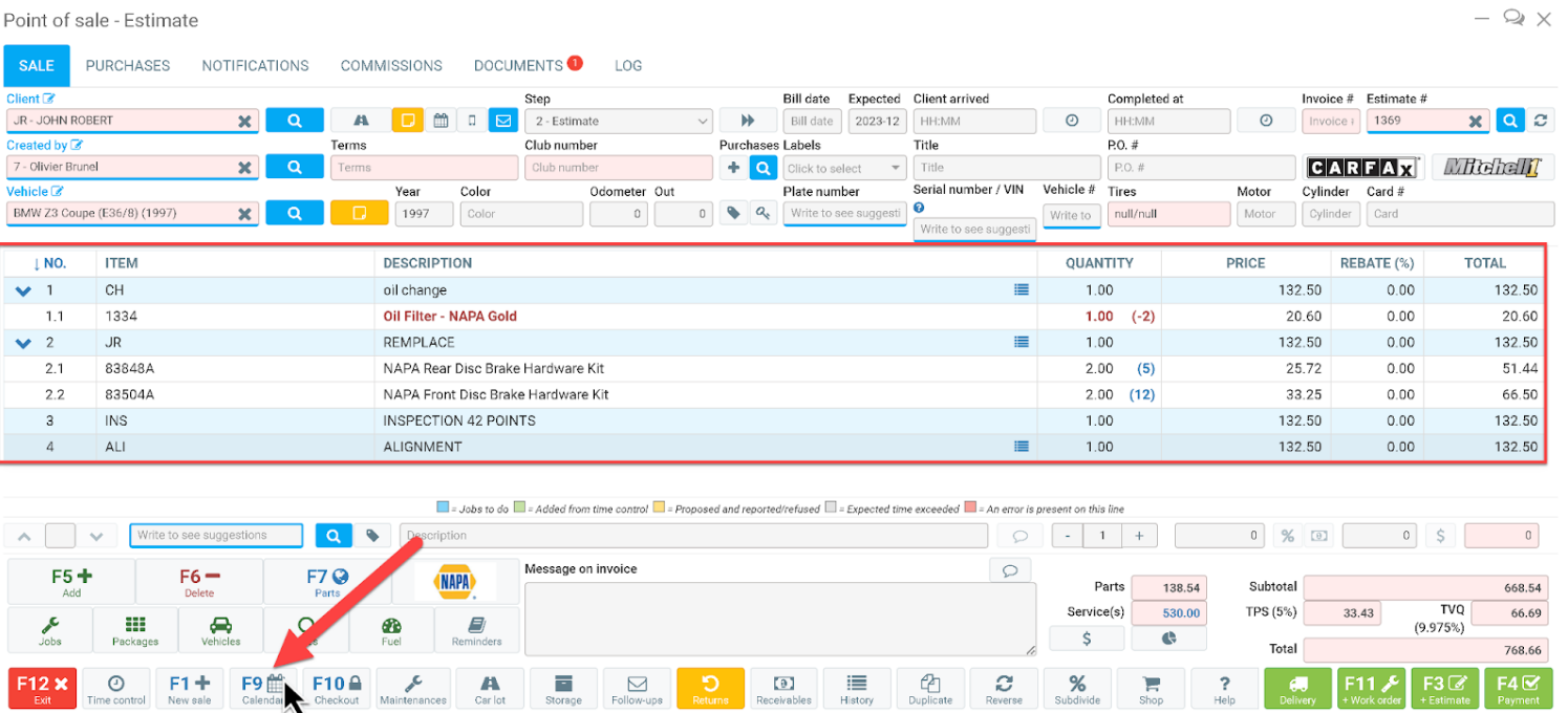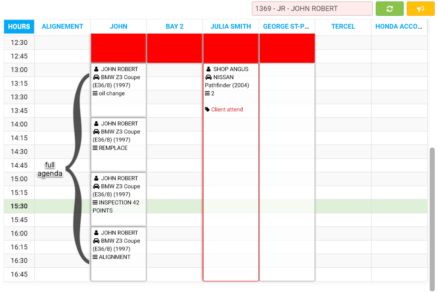 Select the mechanic's schedule, in this case John has a free block and select a time that corresponds to his schedule, in this case if he has work to do on Monday December 25th at 13;00p.m, one left click and this message will appear if there is for than one job paned and click on Yes: