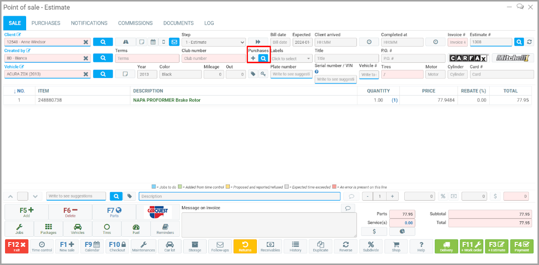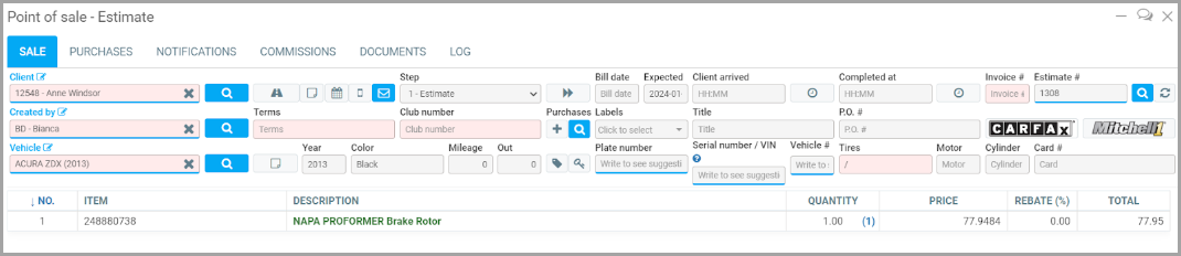 On the left menu, go to the Point of Sale, select a client, a vehicle, and add a Product or Service.