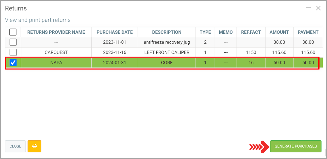 Click on the button Generate Purchases, in the bottom right corner of the screen.