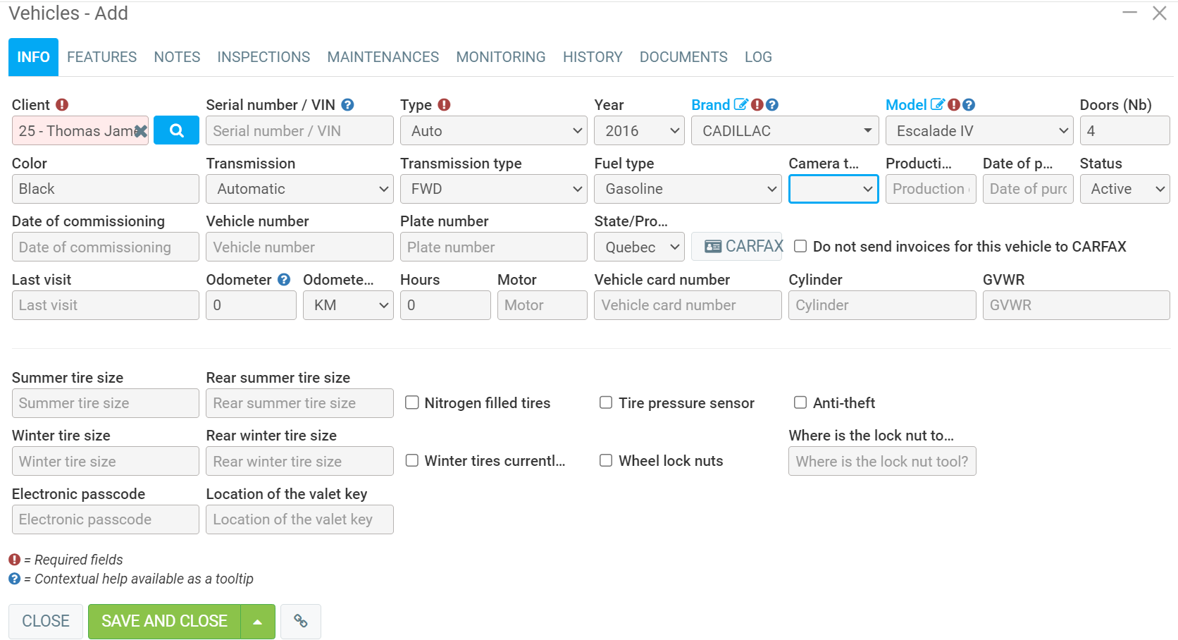 If the right vehicle isn’t selected, you can always add a new vehicle to any client, at any time.