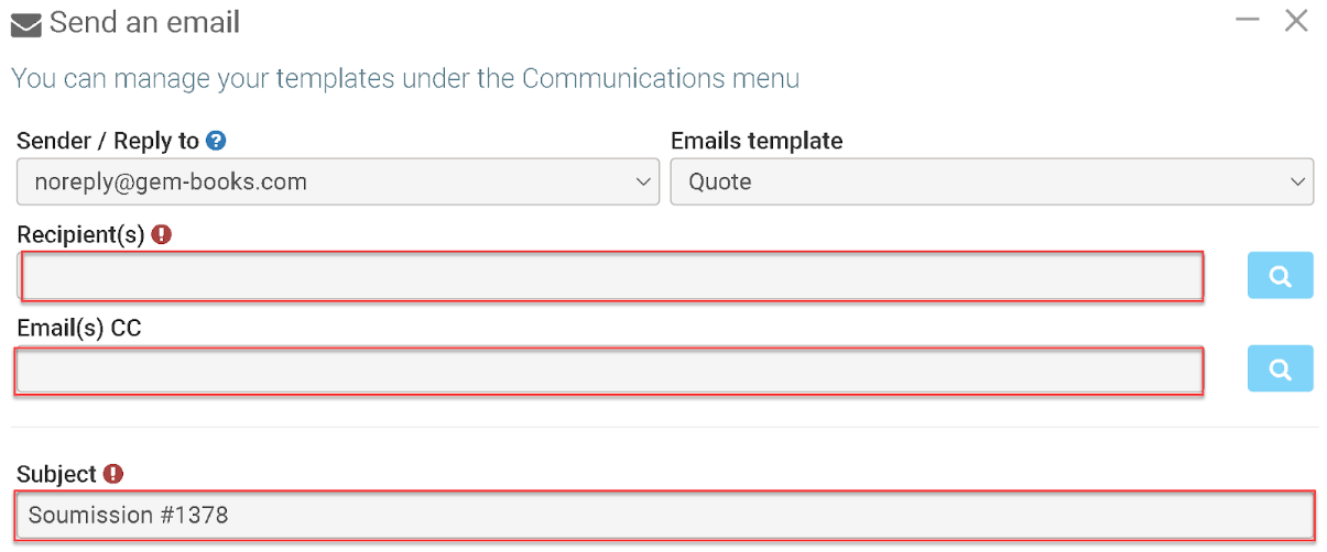 - Will open, make sure to select the wanted template, if you leave it blank it will send through the default template.
