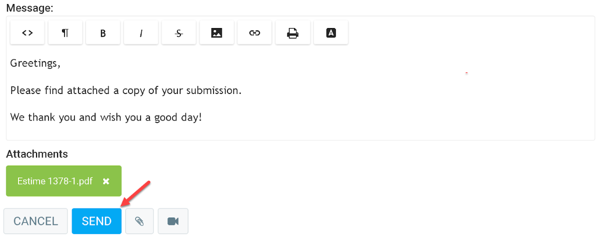 Using the icons the the right, two ways are offered to you the send out he estimate to the client: