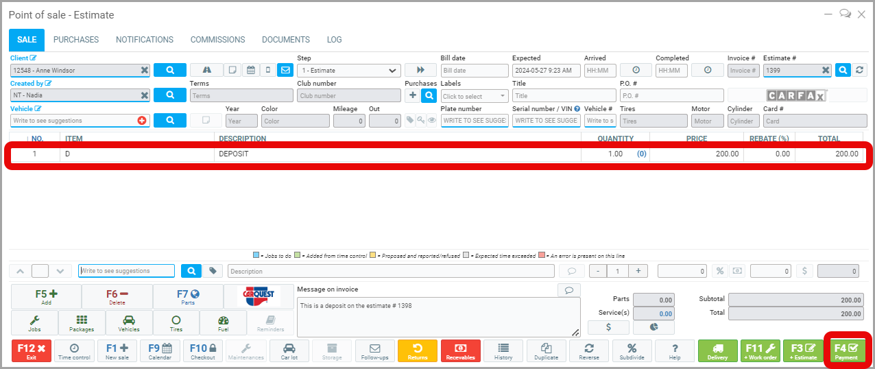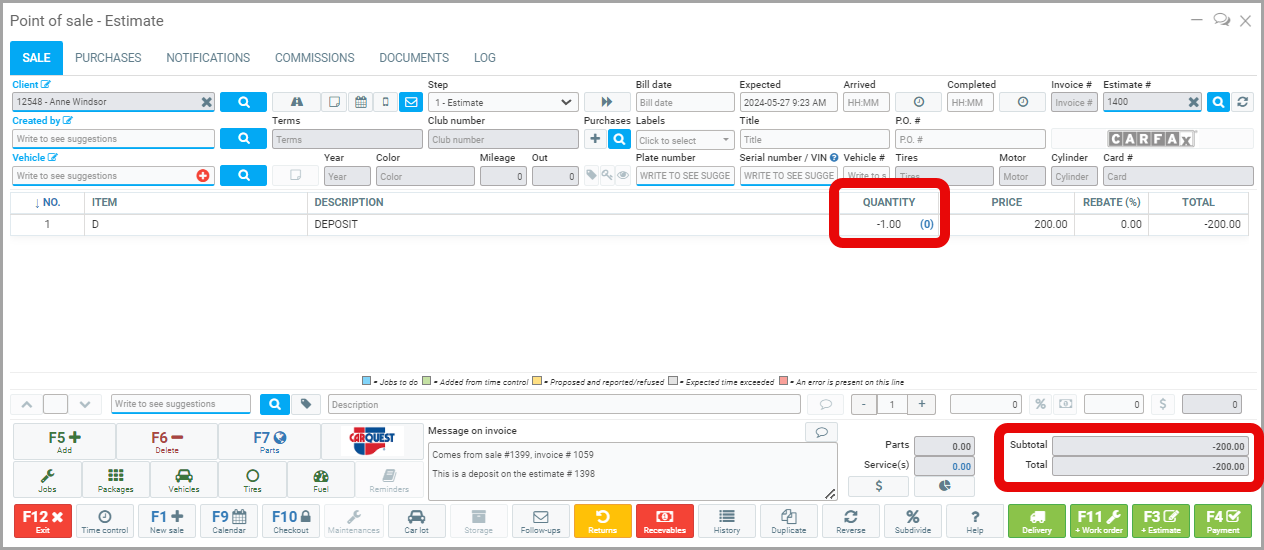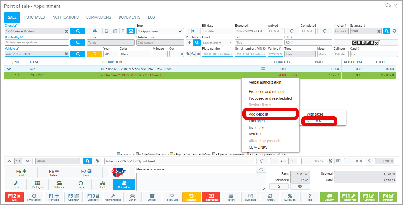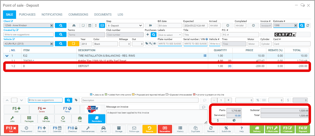 In other words, if a deposit is taken for a tire purchase, a second sale is created just for the deposit, and the deposit amount is subtracted from the tire sale price.