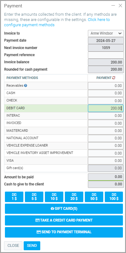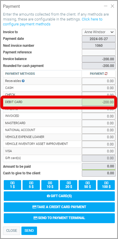 Process the customer's payment by clicking Payment as for a regular sale and selecting the payment method.