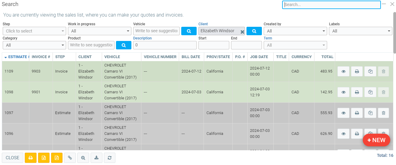 Once you clicked on the right estimate, GEM-CAR will bring you back to the Point of sale as if you never left the sale.