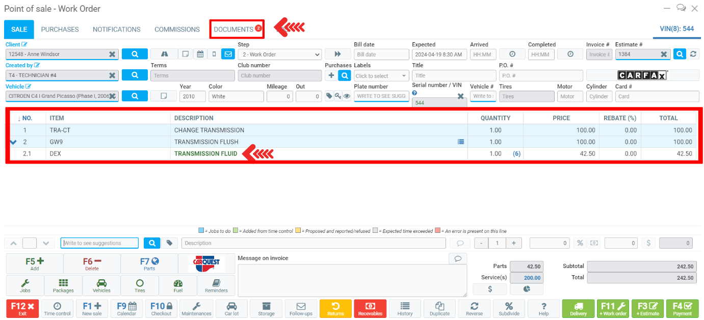 The work order, the estimate and the invoice can be accessed from the Documents tab.