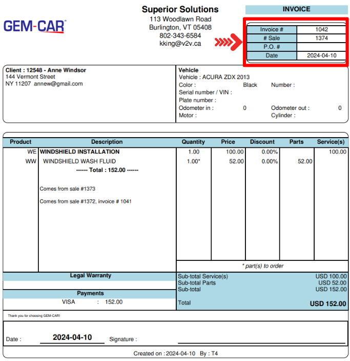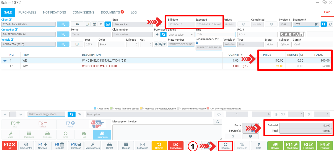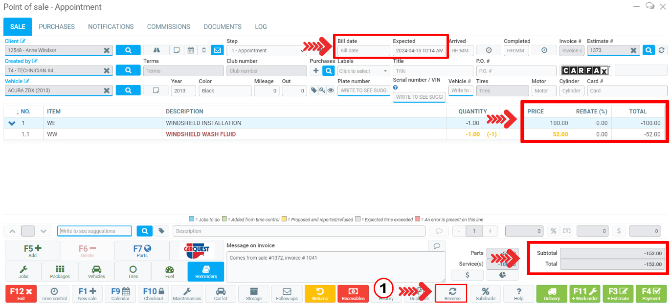 When you click on the button, GEM-CAR will ask you to confirm the action: ''Are you sure you want to reverse this sale?''.