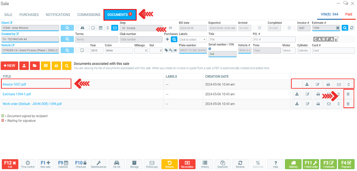 Unlike the invoice, the estimate and work order can be deleted both at the Point of Sale and in the customer's file.