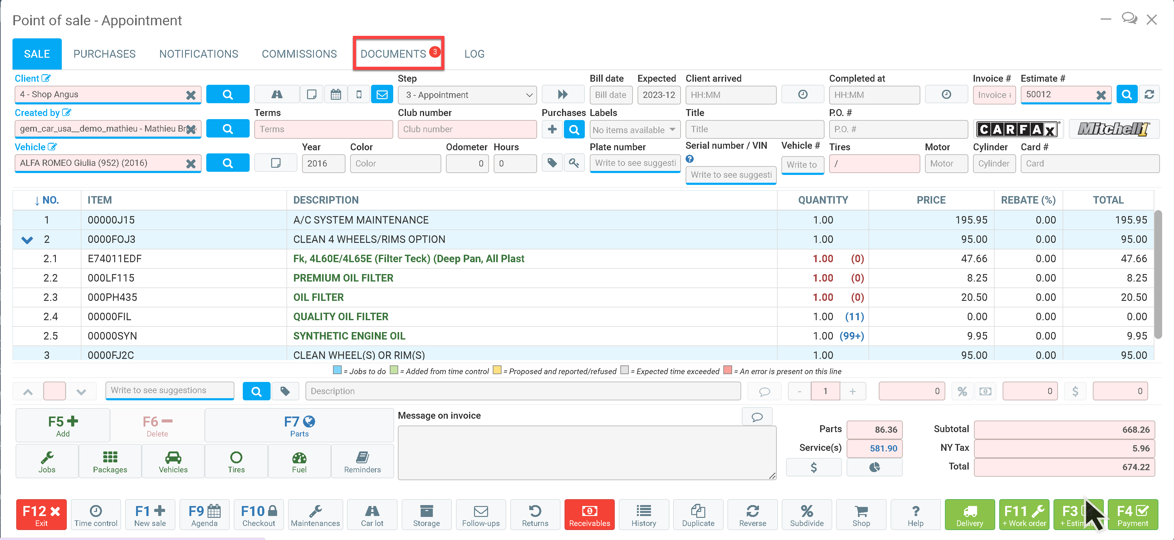 Click on the F3 or the estimate button on the buttom left hand side. It will bring you to the document tab.
