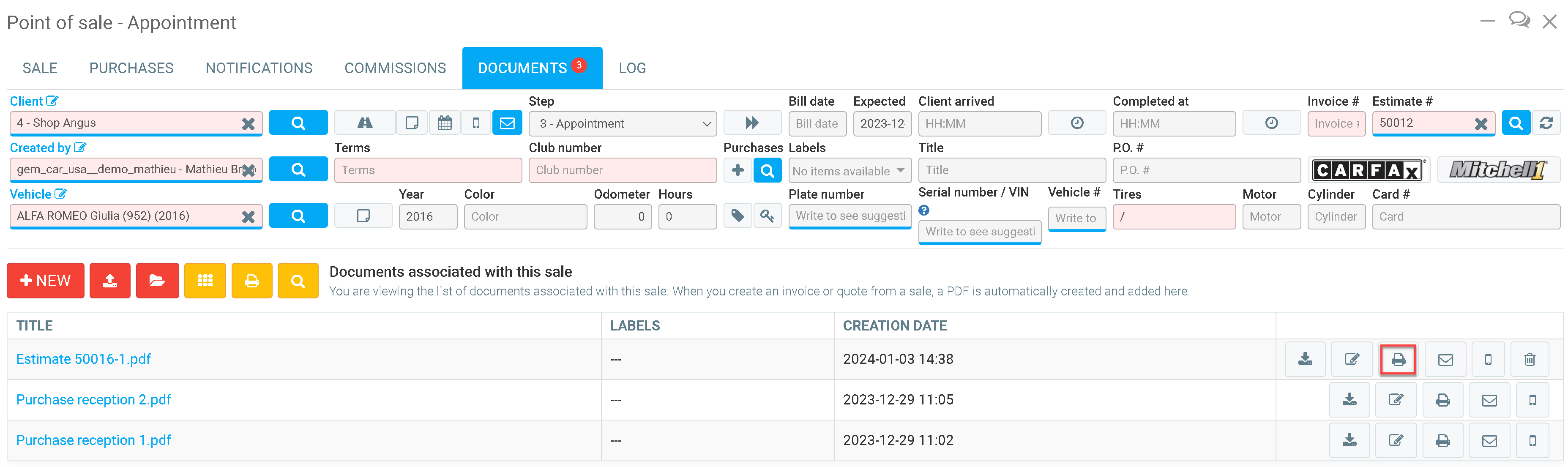 Select the print icon and you can now have a printed estimate.