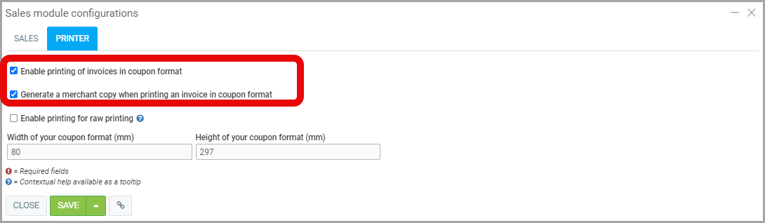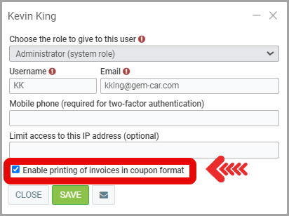 - Select Generate a Merchant Copy When Printing a Coupon-Sized Invoice.