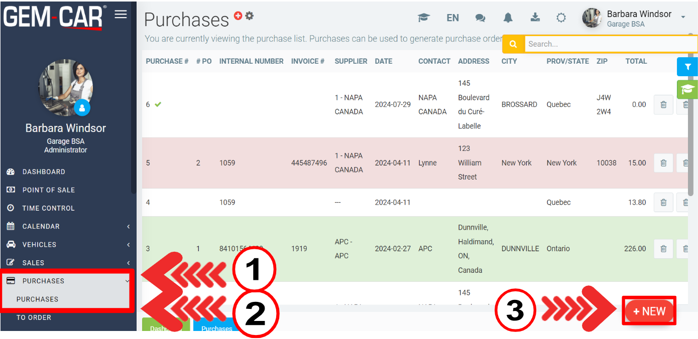 To assign a discount to a purchase, click on Purchases > Purchases > +New.