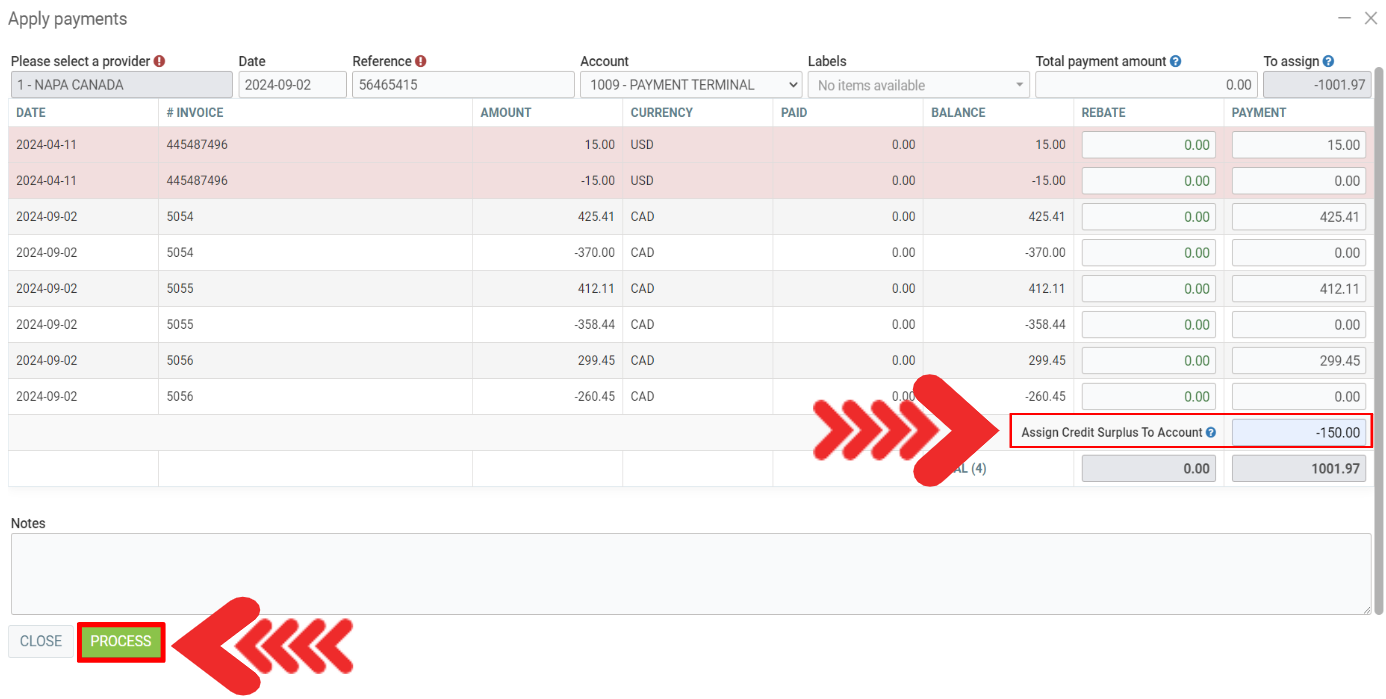 Finally, click on add Assign Credit Surplus to Account and enter the amount you want to discount.