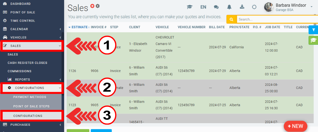 Click on Sales > Configurations > Configurations.