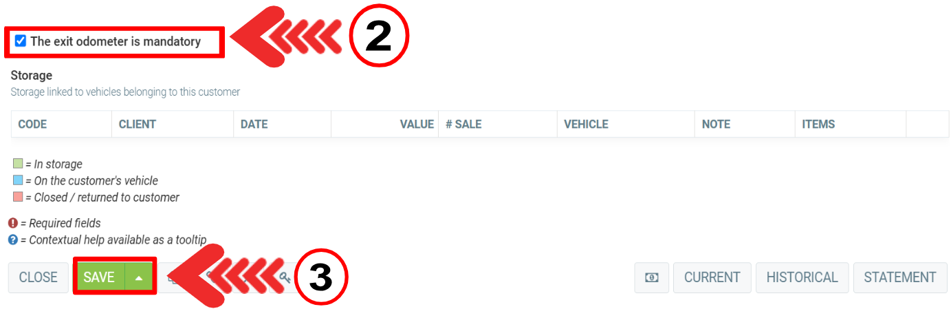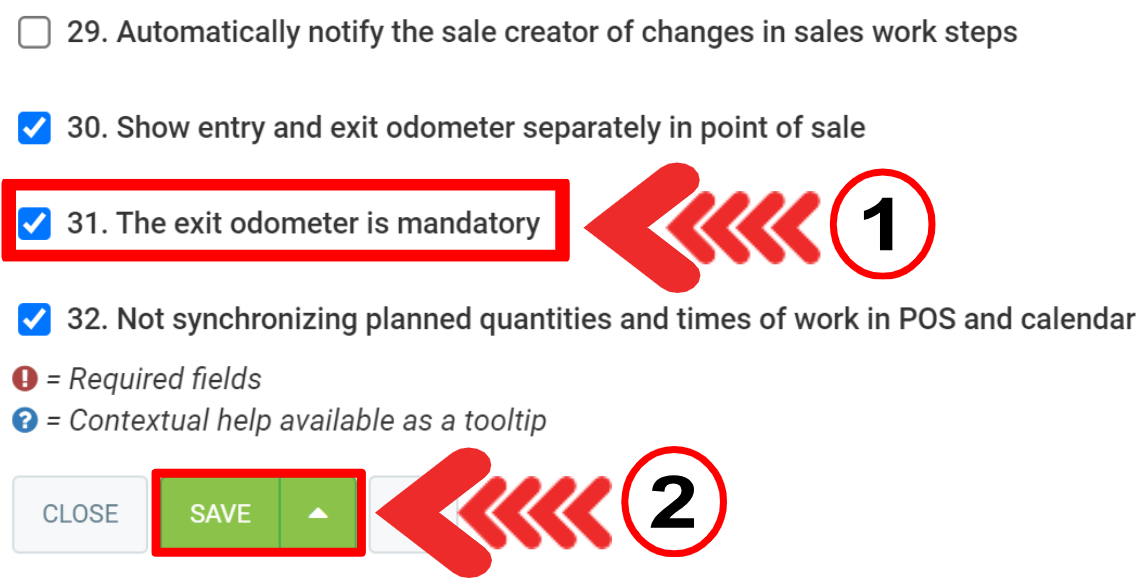 Click on the Vehicles tab. Then check the box "The exit odometer is mandatory."